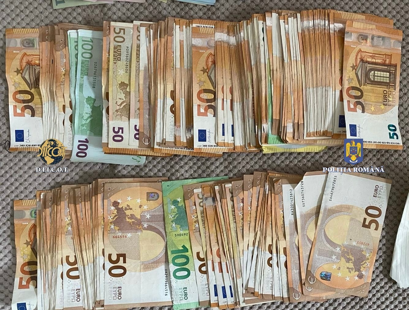 Au fost puse în aplicare 10 mandate de percheziție domiciliară, fiind identificate si ridicate diverse cantități de substanțe psihoactive, dar și droguri de risc (canabis și rezină de canabis), sumele de aproximativ 66.000 lei și 21.000 euro, obiecte purtătoare de urme de substanță, precum și alte mijloace de probă.