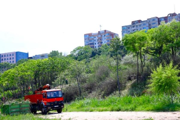 După ce în urmă cu 2 săptămâni echipele societăților contractate de Serviciul Gestionare Spații Verzi au toaletat arborii și au curățat de vegetația în exces de pe taluzul din dreptul străzii Mihai Eminescu, lucrările au continuat spre plaja Modern.