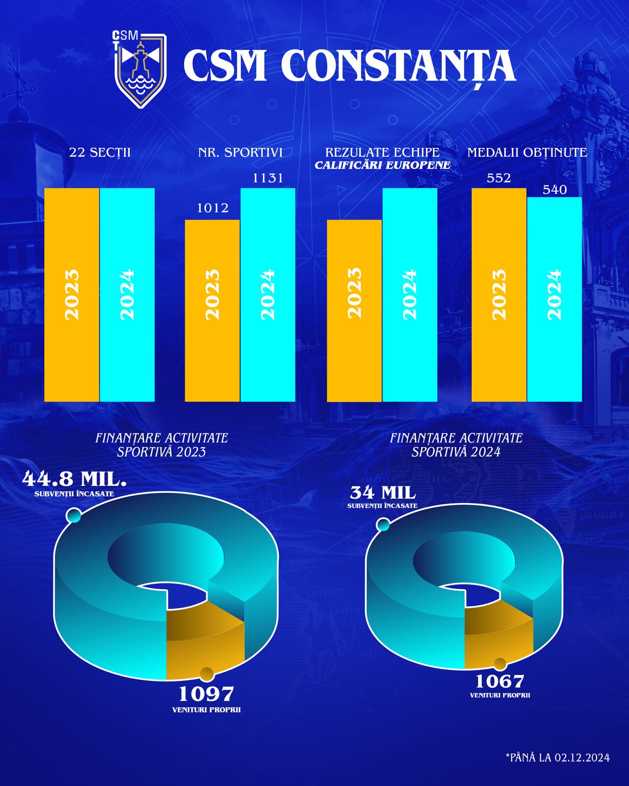„Nu m-am gândit niciodată că voi fi ,,certat” pentru performanță. Ceea ce ar fi trebuit să fie o bucurie imensă pentru Constanța s-a transformat într-o provocare extrem de dificilă. Performanțele obținute nu doar că nu sunt susținute, dar riscă să fie compromise de lipsa resurselor bugetate. Este revoltător ca municipiul Constanța, unul dintre cele mai mari orașe din România, să aibă o infrastructură sportivă mai slabă decât multe comune. Avem în acest moment aprobați prin hotărârea Consiliului Local indicatorii tehnici și financiari pentru reabilitarea sălii de sport Badea Cârțan, pe care am preluat-o în septembrie anul trecut, ca bază dezafectată din administrarea Liceului cu Program Sportiv Nicolae Rotaru. De asemenea au mai fost preluate de către C.S.M. Constanța 3 terenuri în incinta unor unități de învățamânt cu scopul de a construi săli de sport de care ar beneficia și elevii instituțiilor de învățamânt cât și sportivii clubului. Am introdus în proiectul de buget pentru anul 2025 sumele necesare pentru aceste proiecte. Sportivii sunt nevoiți să parcurgă zilnic distanțe de 10-15 km în afara orașului pentru antrenamente. Copiii Constanței vor să facă sport, dar fără sprijin financiar și infrastructură, riscăm să pierdem nu doar performanțele actuale, ci și viitorul sportului în orașul nostru”, a subliniat directorul Clubului Sportiv Municipal Constanța.