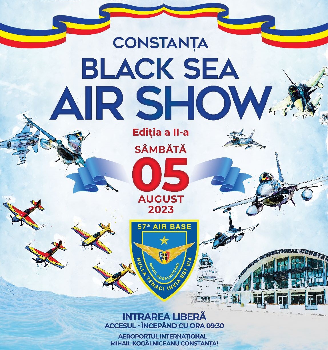 Cea de-a II-a Ediție a Constanța Black Sea Air Show, un eveniment de excepție, organizat de Aeroportul Internațional Mihail Kogălniceanu Constanța în parteneriat cu Aeroclubul României cu sprijinul Forţelor Aeriene Române, Baza 57 Aeriană Mihail Kogălniceanu și al Primăriei Mihail Kogălniceanu – Constanța, anunță astăzi o parte din evoluțiile spectaculoase pe care le pregătim în cadrul Show-ului aerian din 5 august 2023.