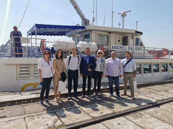 Echipa Băncii Mondiale, însoțită de specialiști din portul Constanța, a efectuat și un tur tehnic de port cu nava Anghel Saligny.