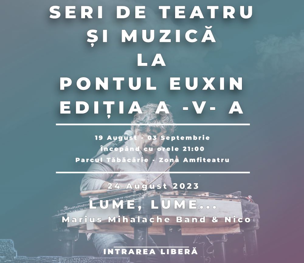 În această săptămână din cadrul proiectului „Seri de Teatru și Muzică la Pontul Euxin”, ediția a V-a, vom încânta publicul cu următoarele spectacole: