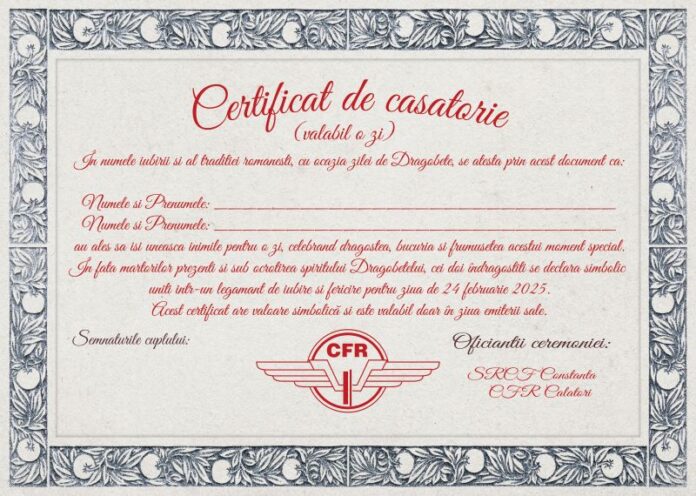 De Dragobete, în Gara CFR Constanța este celebrată dragostea. Ziua Națională a Iubirii la români este marcată, în acest an, de SRCF Constanța și CFR Călători Constanța, care oficiază, luni, 24 februarie 2025, de la ora 11.00, „căsătorii” pentru o zi.