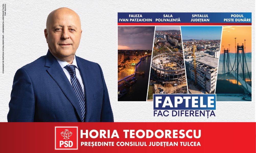 Județul Tulcea are șansa de a continua pe drumul dezvoltării, și în următorii patru ani. Proiectele actualului președinte al Consiliului Județean, Horia Teodorescu, și ale echipei de consilieri PSD, includ investiții majore în infrastructura rutieră, de educație, de sănătate, cultură și sport. Printre cele mai importante se numără construirea drumului expres, care să lege podul peste Dunăre de municipiul Tulcea și de Constanța și reabilitarea drumului județean Tulcea-Chilia. În plus, echipa PSD își propune ridicarea unui cartier de locuințe ANL, a unei grădinițe cu peste 100 de locuri, a mai multor terenuri și săli de sport, dar și a unui centru multicultural. Proiectele deja începute, precum Sala Polivalentă și extinderea Spitalului Județean de Urgență vor fi gata anul viitor.