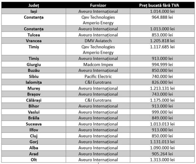 Acelaşi microbuz pe care Aveuro l-a adus la Iaşi cu 1.014.000 lei a costat la Braşov doar 743.000 lei. Cu preţul adjudecat la Braşov, judeţul Iaşi ar fi cumpărat 35 de microbuze şcolare electrice faţă de doar 26 cât a luat, în condiţiile în care furnizor a fost aceeaşi firmă, Aveuro Internaţional. Deci, Iaşiul e pe gaură cu nouă microbuze. În euro, asta înseamnă că fiecare microbuz de la Iaşi a fost cu 54.000 euro mai scump decât la Braşov”, se arată în ancheta Reporter de Iaşi.