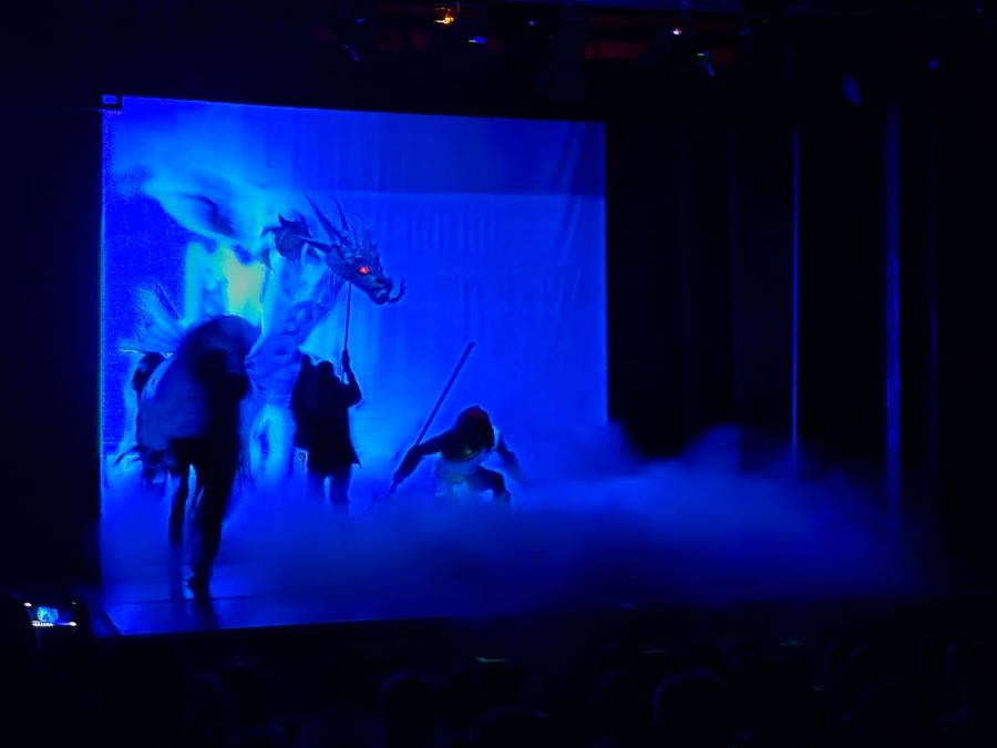 Spectacolul prezintă două povesti din timpuri stravechi, cea a balaurului dobrogean, înfrânt de zeul Poseidon sau Neptun, cum îl numeau românii, balaur cu trei capete.
