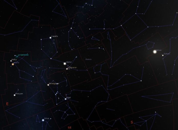 Recunoaștere de constelații, observații la planeta Saturn și la satelitul nostru natural Luna.
