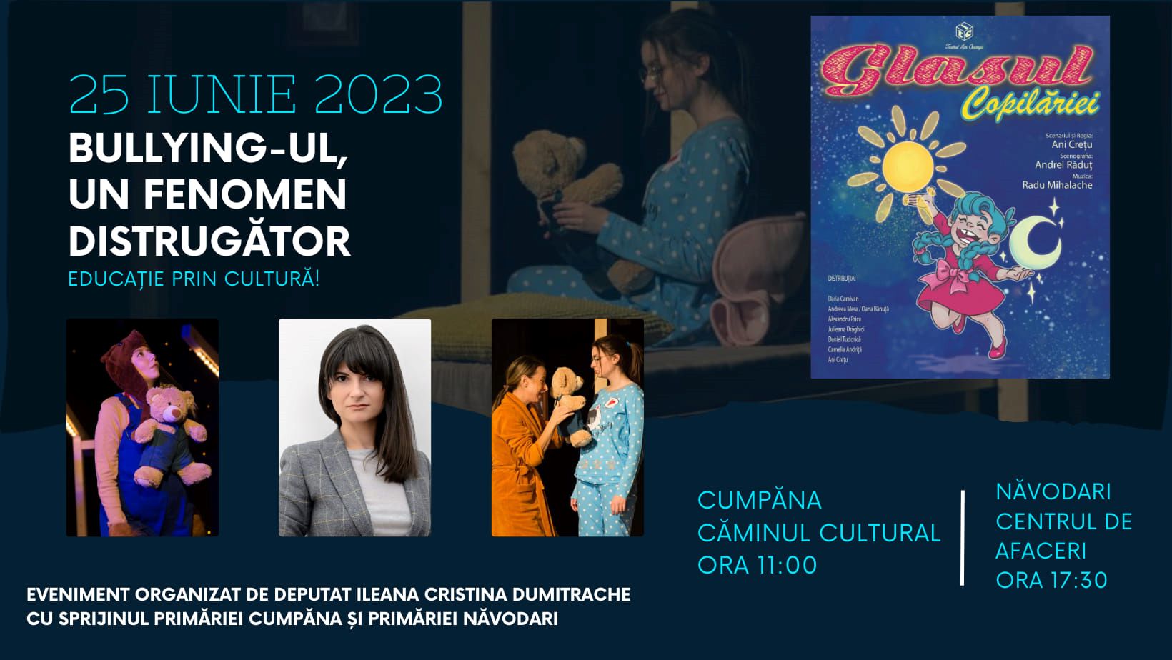 ”Educație prin cultură” este deviza prin care se dorește aducerea în atenția copiilor, părinților, profesorilor și întregii comunități, o problemă acerbă și actuală: BULLYING-UL.