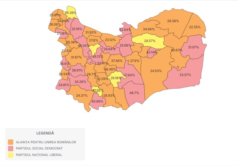 În județul Tulcea, PSD s-a clasat pe primul loc în preferințele electoratului la alegerile parlamentare, urmat de AUR, SOS și PNL.