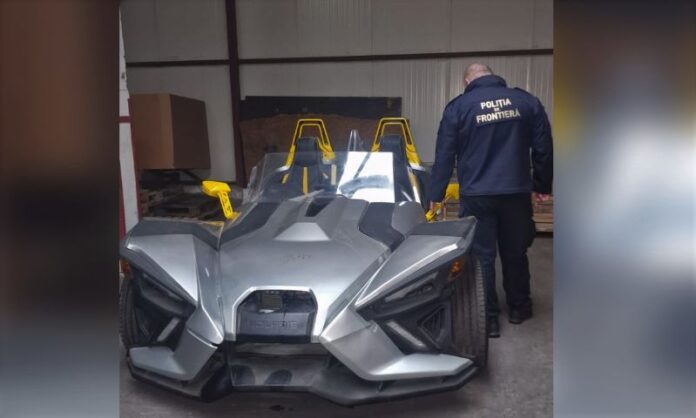 Cu această ocazie, a fost descoperit în interiorul acestuia, un triciclu cu motor, iar în urma verificărilor efectuate a rezultat faptul că acesta este semnalat de către autoritățile din Canada ca bun căutat în vederea confiscării.