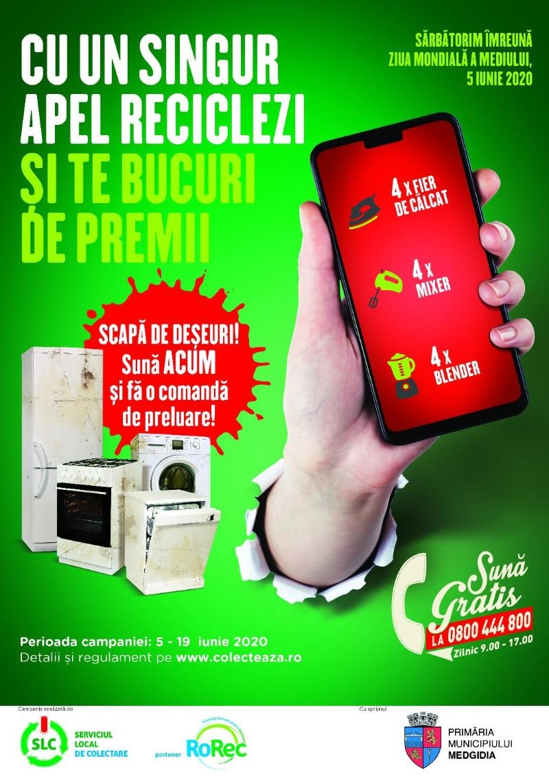 În municipiul Medgidia, programul de colectare se va desfășoara în perioada 05 – 19 iunie prin Serviciul de preluare a comenzilor de ridicare a deșeurilor electrice de la domicilii și sedii ale firmelor sau instituțiilor.